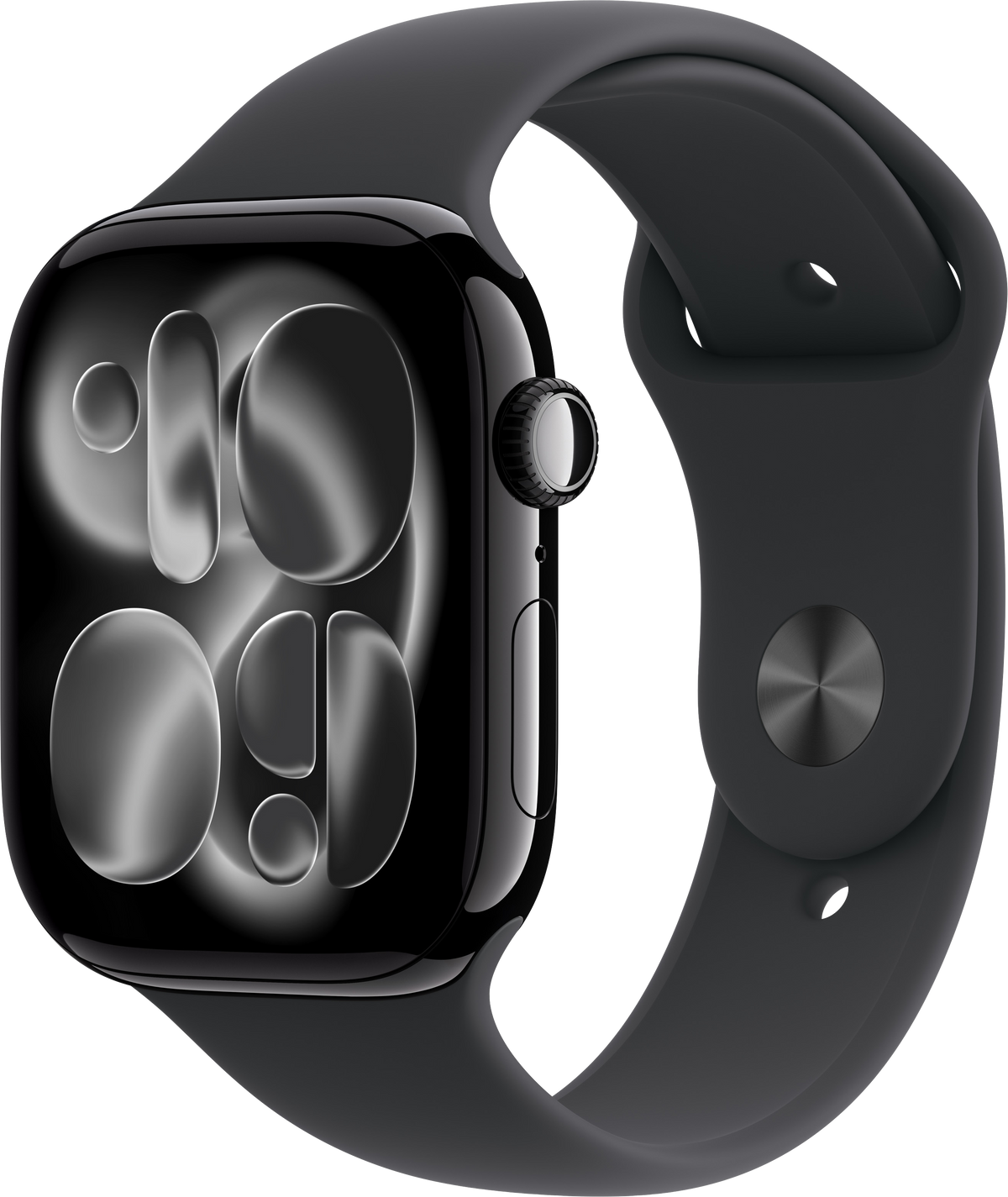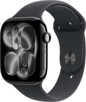 Apple Watch Series 11 (GPS, 46 mm) peilimusta ja musta urheiluranneke, M/L