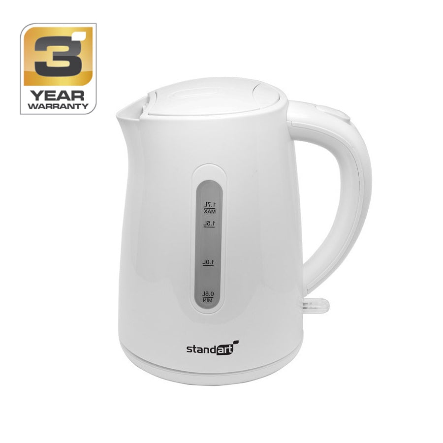 Standart T-8805 vedenkeitin on edullinen laite, joka ei tingitä laadusta. Se on yksi markkinoiden edullisimmista vedenkeittimestä, mutta sillä on runsas 3 vuoden takuu, mikä osoittaa valmistajan luottamuksen sen kestävyyteen ja suorituskykyyn.