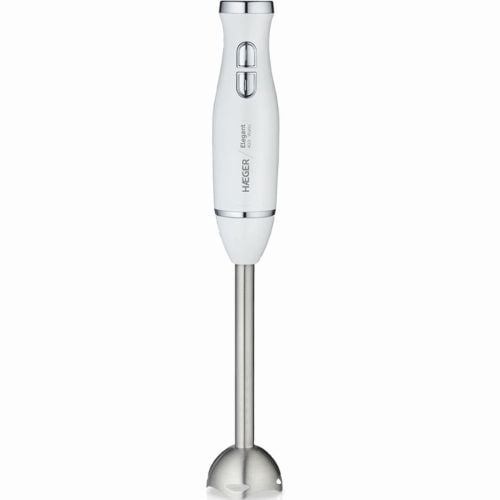 Valkoinen Haeger Elegant HB-400.021A sauvasekoitin on tyylikäs ja käytännöllinen keittiökone, joka on suunniteltu tekemään ruuan valmistamisesta helppoa. Sen tehokas 400 W moottori ja terävät ruostumattomasta teräksestä valmistetut terät sekoittavat, soseuttavat ja murskaavat vaivattomasti keittojen, smoothieiden, kastikkeiden ja muiden ainesosia.