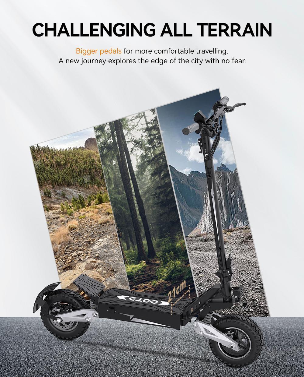 OOTD T10 yhdistää täydellisesti muotoilun ja älykkään toiminnallisuuden. Sen minimalistinen estetiikka tarjoaa hillityn tyylin, joka sopii sekä toimistolle että arkeen. Ergonomiset 50x23 cm polkimet takaavat mukavuuden pitkillä matkoilla, jopa talvisaappaat jalassa. Yhdellä painikkeella taittuva järjestelmä tarjoaa käytännöllistä säilytystilaa pieniin asuntoihin.