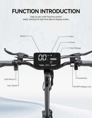 Koe vaivaton kaupunkiseikkailu OOTD T10:n avulla. Sen tehokas 500 W:n (huipputeho 900 W) ja vääntömomenttinen moottori mahdollistaa jyrkkien kaupunkikatujen helpon kiipeämisen 35 asteen nousukulmassa. Nauti tasaisesta kiihtyvyydestä liikennevaloissa ja jännittävästä 50 km/h huippunopeudesta.