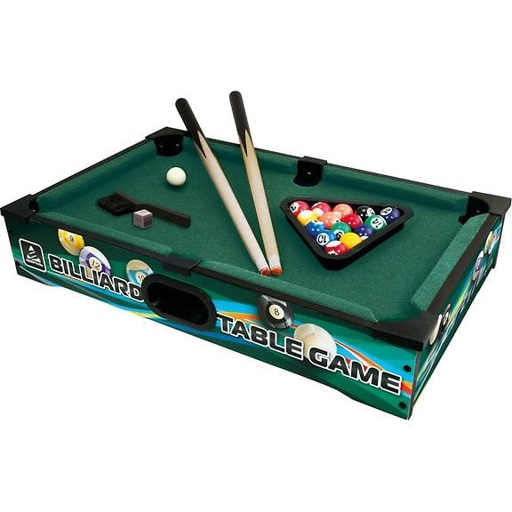Tuo kahdeksan pallon jännitys olohuoneeseesi tai toimistoosi tämän kätevän pöytäbiljardipelin avulla! Tämä kompakti setti on täydellinen niille, jotka rakastavat peliä, mutta joilla on vähän tilaa. Se on loistava tapa rentoutua ja nauttia ystävällisestä kilpailusta ilman täysikokoista pöytää.