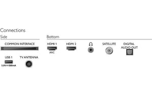 Connectivity is made simple with multiple ports, including two HDMI inputs and one USB port. Easily connect your gaming console, Blu-ray player, or other devices via HDMI, or play music and view photos directly from a USB drive. Features like HDMI ARC and EasyLink (HDMI-CEC) simplify control over connected devices.