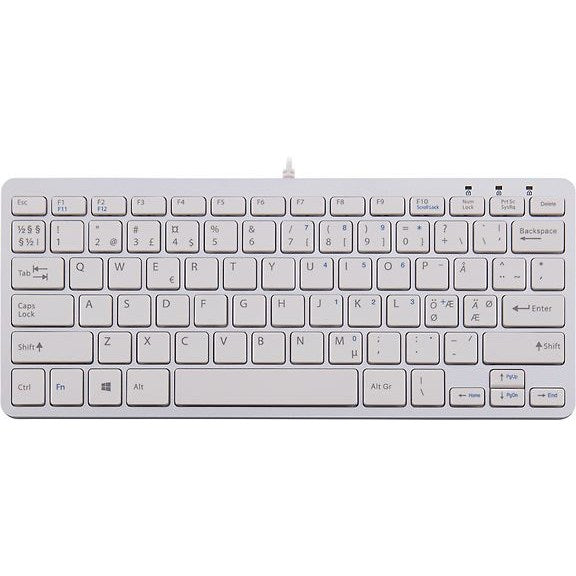 The R-Go Compact keyboard is an exceptionally compact ergonomic keyboard designed to enhance your comfort and productivity. Its unique design ensures that when you use both the keyboard and a mouse, your hands remain at shoulder width. This promotes a natural and relaxed posture for your shoulders and elbows, significantly reducing the risk of strain injuries.