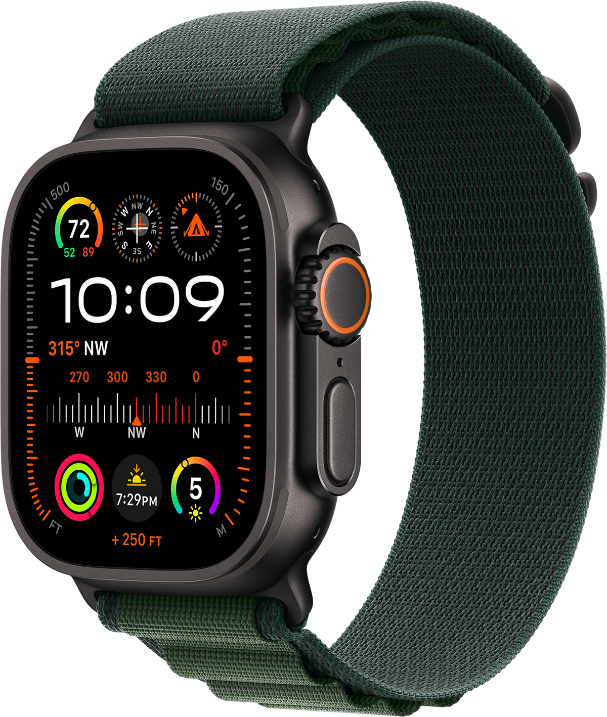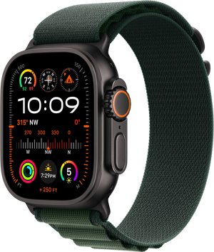 Apple Watch Ultra 2 (GPS + Cell) 49 mm, Black Titanium Case with Dark Green Alpine Loop