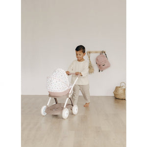 The Smoby Baby Nurse Modern Basket stroller is a lightweight and comfortable toy stroller with a sturdy frame, fabric hood, storage basket, and smooth plastic wheels, perfect for little mommies and daddies to walk their toy babies.