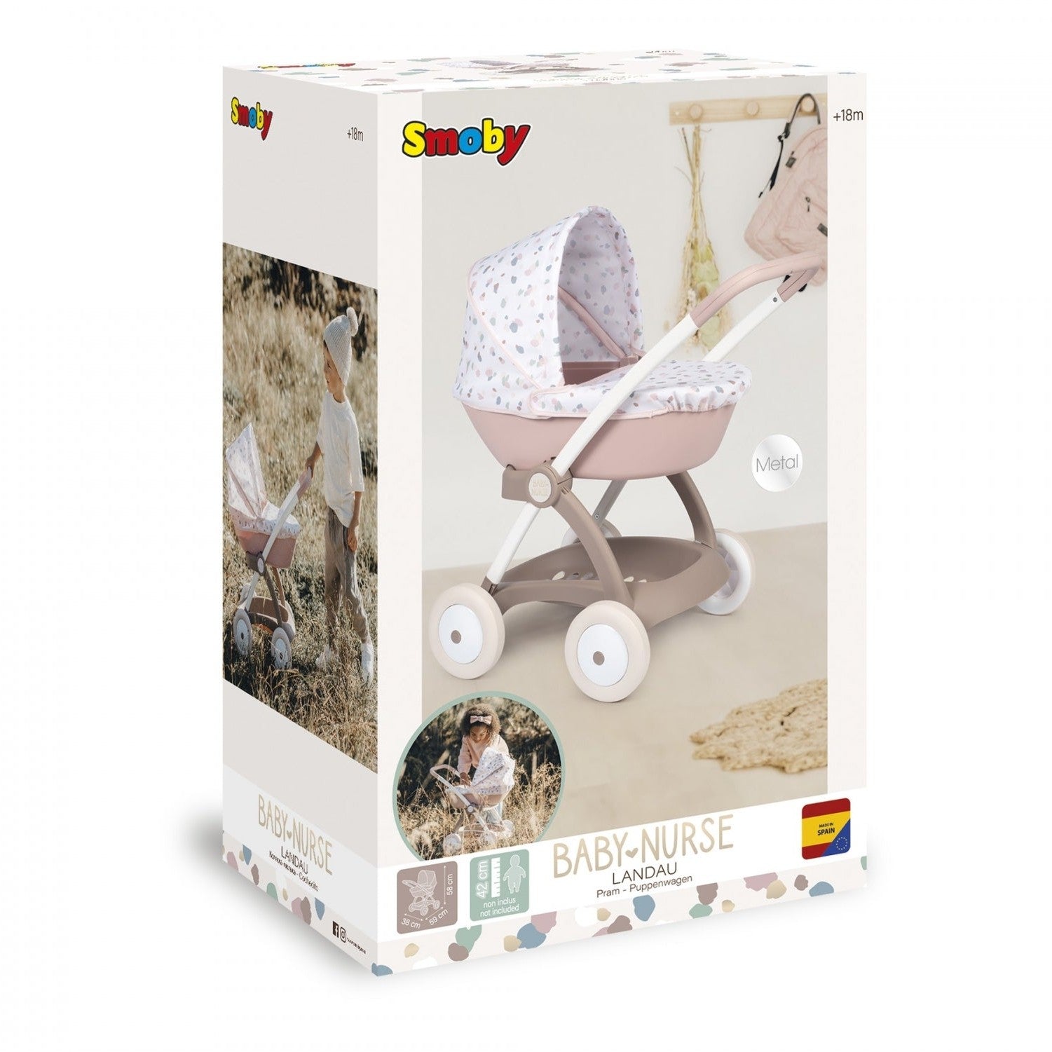 The stroller is equipped with smooth plastic wheels, ensuring a smooth and effortless ride for the toy baby. The set also includes a comfortable diaper made of thick material, adding to the overall realism and play value of the stroller. With its thoughtful design and attention to detail, the Smoby Baby Nurse Modern Basket stroller is sure to provide hours of fun and imaginative play for little mommies.