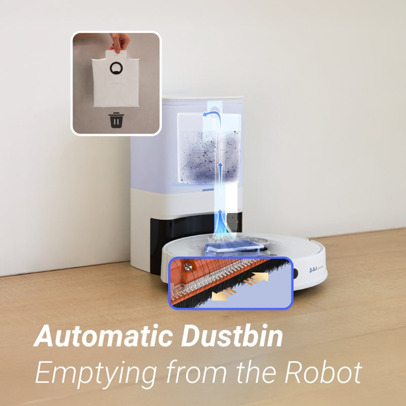 The docking station automatically empties tangled waste with its advanced roller brush, so you don't have to do it manually. Best of all, you can simply replace the full 4-liter dust bag every 90 days instead of manually emptying the robot's dustbin after each cleaning task.
