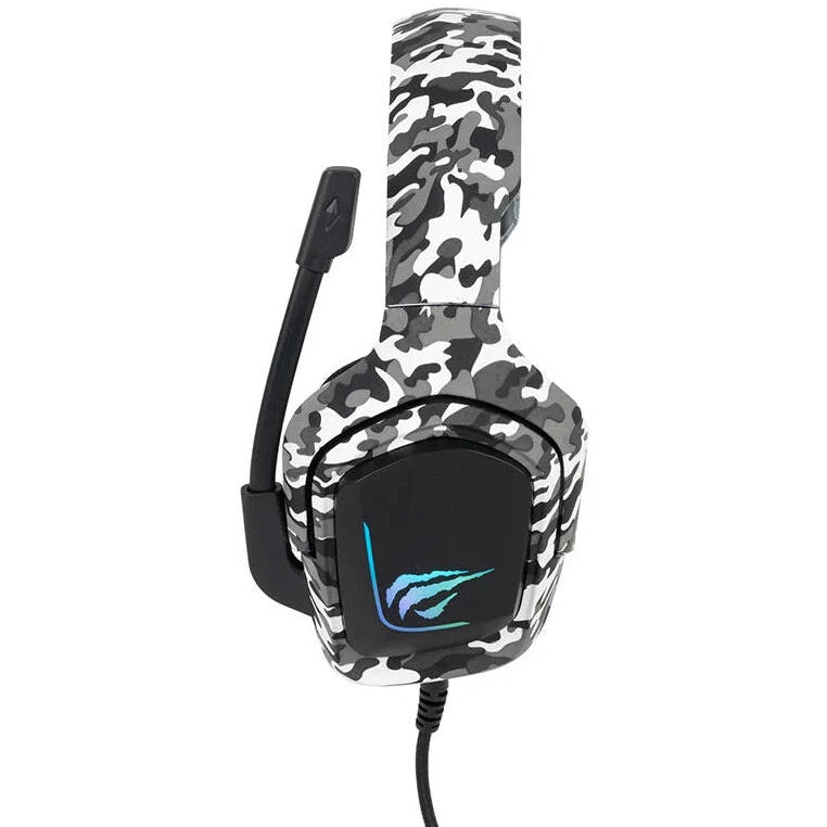 The Havit H653d Camouflage gaming headphones in white offer an immersive audio experience with 40mm drivers, clear communication via a built-in microphone, and an ergonomic design for extended comfort during gameplay.