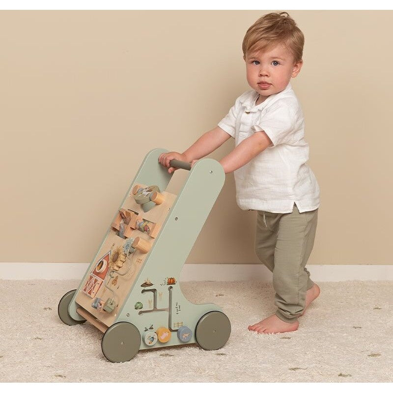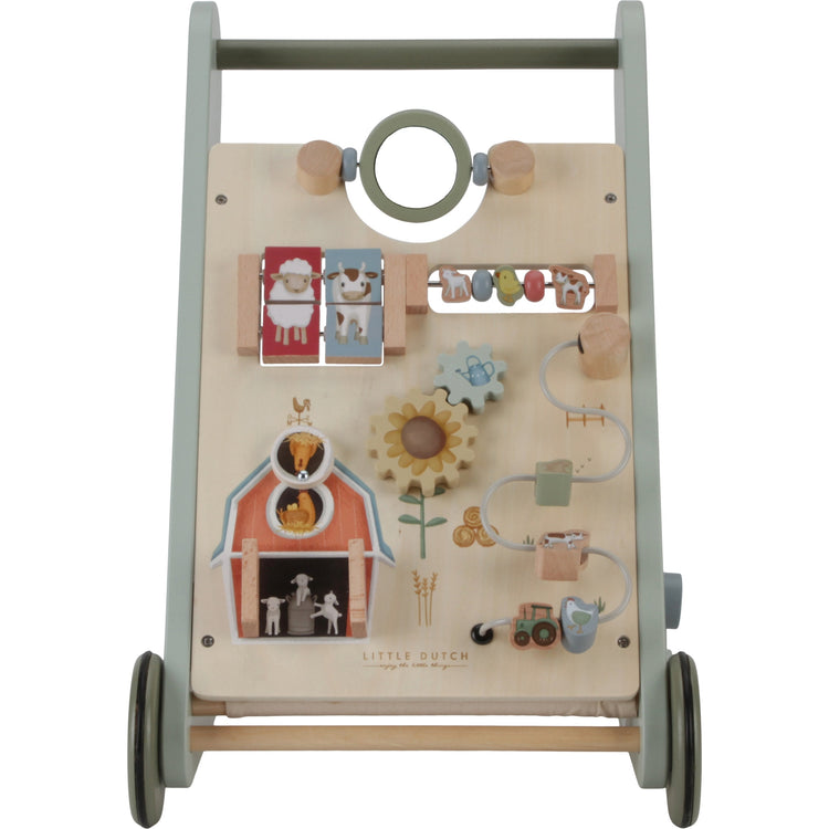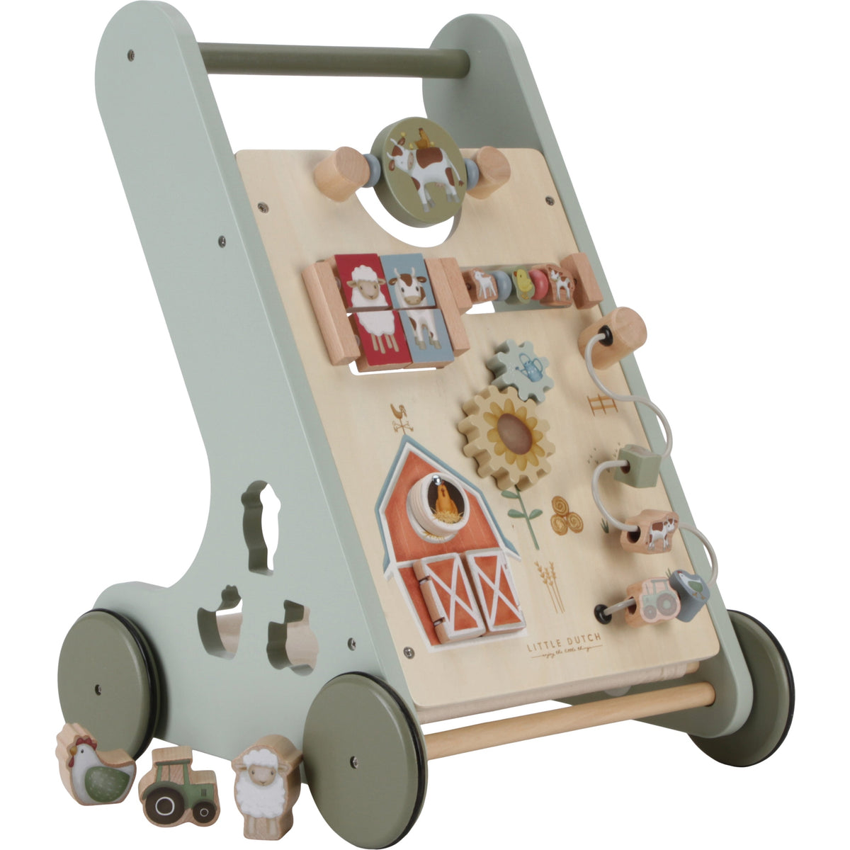 The Little Dutch Little Farm Wooden Walker is an engaging and sturdy companion for toddlers taking their first steps. Designed to support and encourage mobility, this walker combines practical functionality with delightful play features, making the journey of learning to walk an exciting adventure.