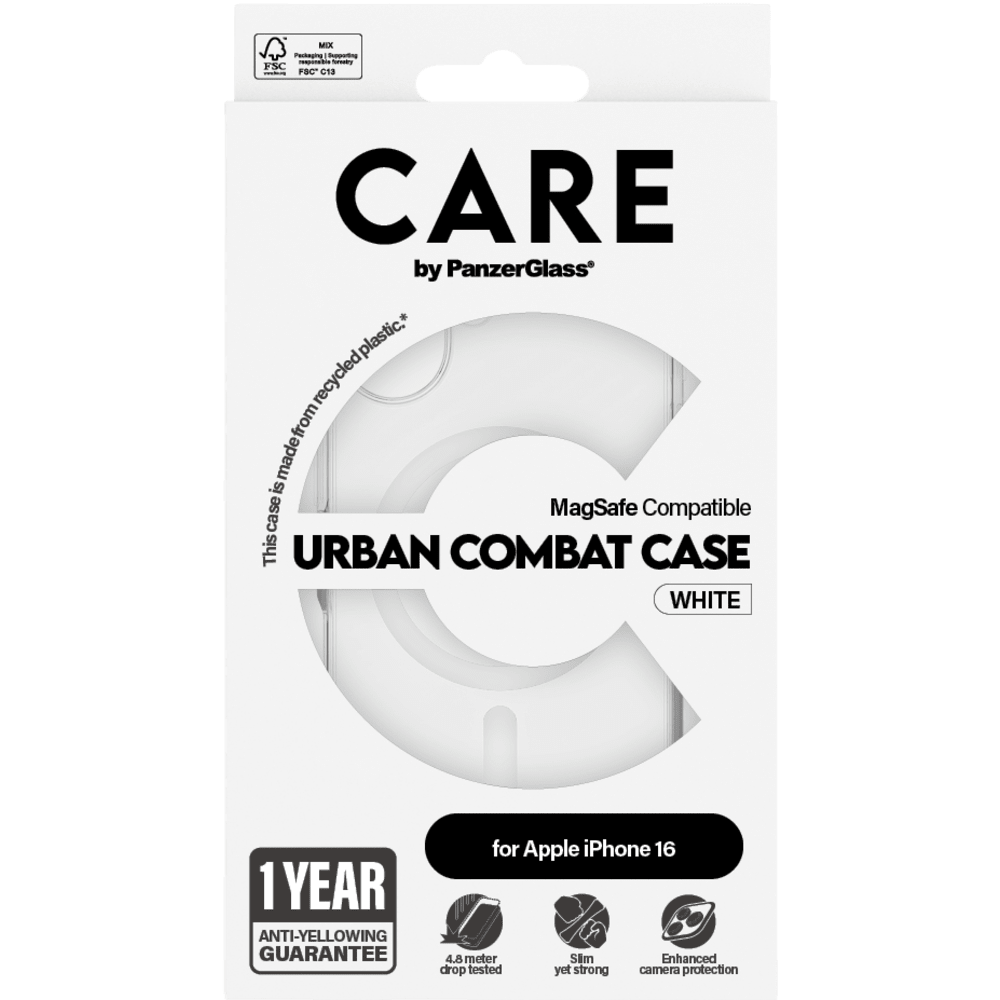 Care by PanzerGlass Urban Combat MagSafe -Case for iPhone 16, White Magnet