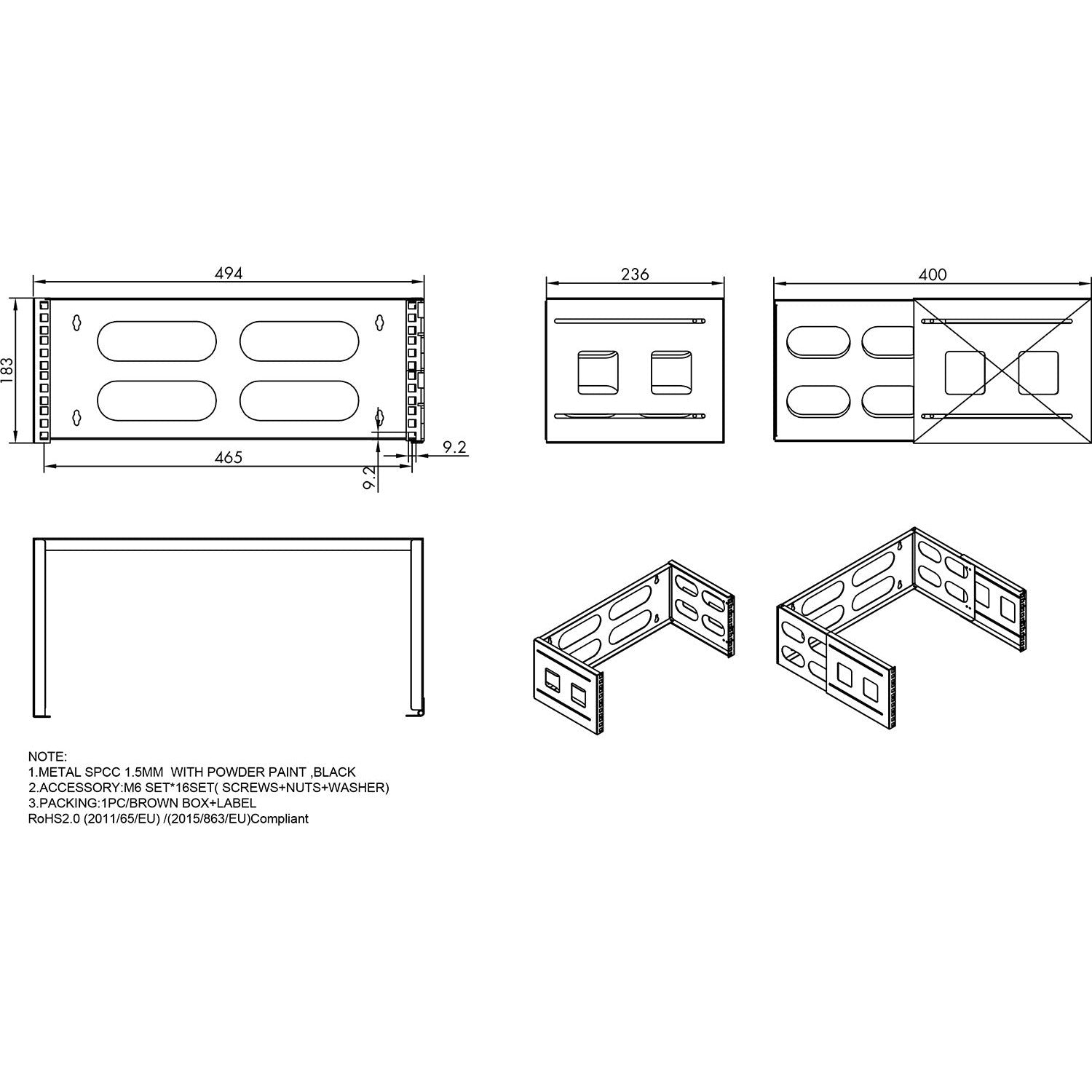 The Prokord 19" Mount Bracket 4U Black is an essential accessory for any professional IT setup, designed to securely mount equipment within a standard 19-inch server rack. This robust bracket ensures optimal organization and stability for your valuable network and server components, making it an indispensable addition to data centers, server rooms or office environments.