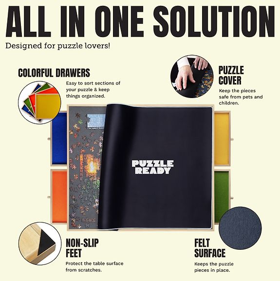 With the Puzzle Ready puzzle board, you can transform any space into a puzzle-solving haven. Its portability allows you to move your puzzle from room to room, ensuring you can work on it wherever you feel most comfortable. Say goodbye to cluttered tables and lost pieces â this board keeps everything organized and within reach.