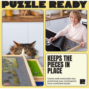 The Puzzle Ready board includes a protective mat that can be placed over unfinished work. This mat keeps the pieces in place, allowing you to store your puzzle safely under the sofa or in a closet without worrying about it being disturbed. This feature is especially useful for those who enjoy working on puzzles over several days or weeks.