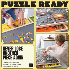 The Puzzle Ready wooden puzzle board is an excellent solution for puzzle enthusiasts, offering a dedicated space to assemble, organize, and store your jigsaw puzzles. This board ensures your work stays tidy and your valuable creation remains safe and secure.