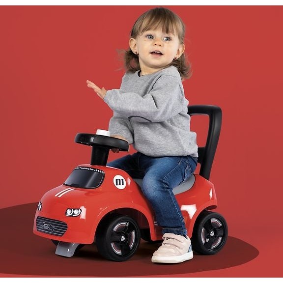 The Smoby ride-on car is thoughtfully equipped with a rear handle, providing essential support for toddlers as they learn to stand and take their first steps. This feature aids in developing balance and motor skills, making it an excellent tool for early childhood development.
