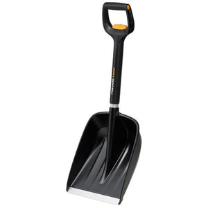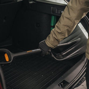 Equipped with textured, non-slip grips, the Fiskars X-Series Car Telescopic Snow Shovel provides enhanced control and reduces fatigue during use. The large, angled D-shaped handle is designed to accommodate winter gloves, keeping your wrists in a comfortable, ergonomic position.