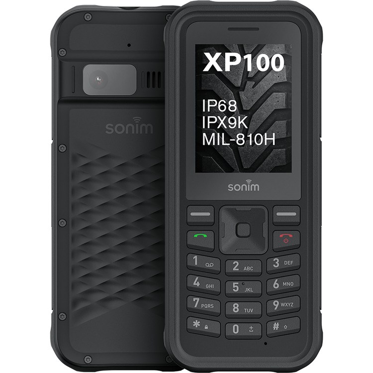 The Sonim XP100 is designed to withstand drops and shocks with a Corning® Gorilla® Glass display and MIL-STD-810H, IP68, and IPX9K ratings, making it drop-proof, water-resistant, and dust-proof.