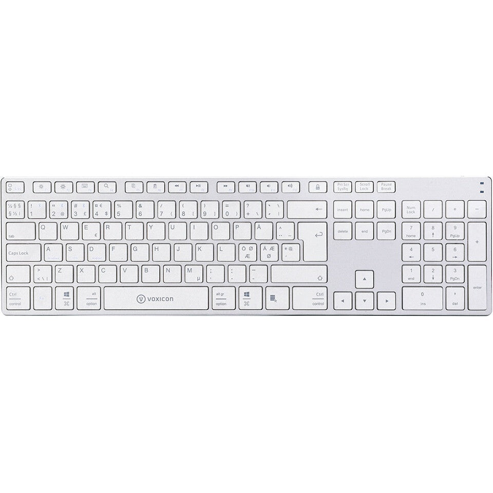 Voxicon DK-290B-WHT Bluetooth Nordiskt Tangentbord, Silver/Vit