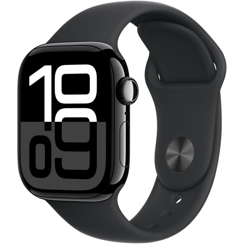 Apple Watch Series 10 (GPS 42 mm), S/M, spegelsvart aluminiumfodral med sportband