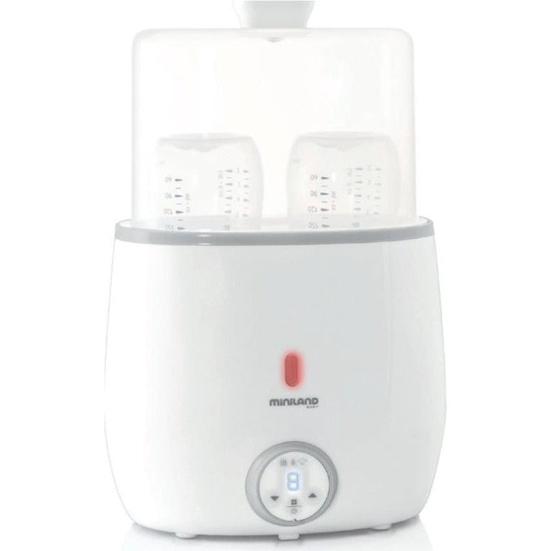 Miniland Warmy Twin är en multifunktionell enhet designad för att förenkla nappflaska och matlagning. Den steriliserar nappflaskor och tillbehör och värmer olika blandningar, vilket gör den till ett måste för upptagna föräldrar.