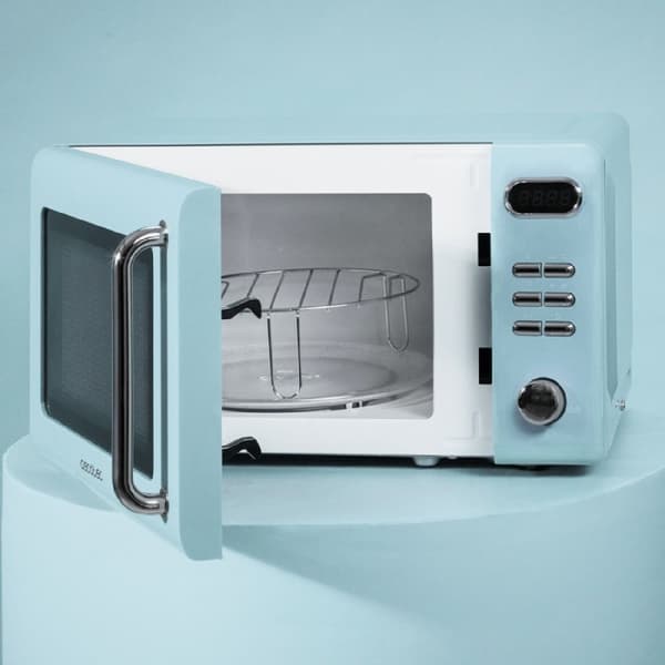 Mikrovågsugnen Cecotec ProClean 5110 Retro Blue kombinerar en charmig vintage-estetik med modern funktionalitet, vilket gör den till ett iögonfallande tillskott till alla kök. Dess livfulla retroblå finish ger en touch av personlighet, medan den generösa invändiga kapaciteten på 20 liter är perfekt dimensionerad för dagliga uppvärmnings-, matlagnings- och grillbehov för individer eller små familjer.