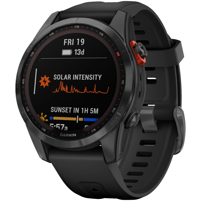 Pekskärmsgränssnittet på Fenix 7-modellerna är en betydande förbättring jämfört med sina föregångare, och tillsammans med knapparna förbättrar det användbarheten och användningen av menyer avsevärt. Det nya, mer effektiva solcellsladdade klockglaset förlänger batteritiden med upp till 30 procent och ger säkerhet även på längre resor. Noggrann flerfrekvens GNSS och navigationssensorer vägleder när du rör dig i avlägsna områden. Dessutom har denna Garmin-modell även smarta aviseringar, musikinspelning och Garmin Pay kontaktlös betalning som användbara funktioner.