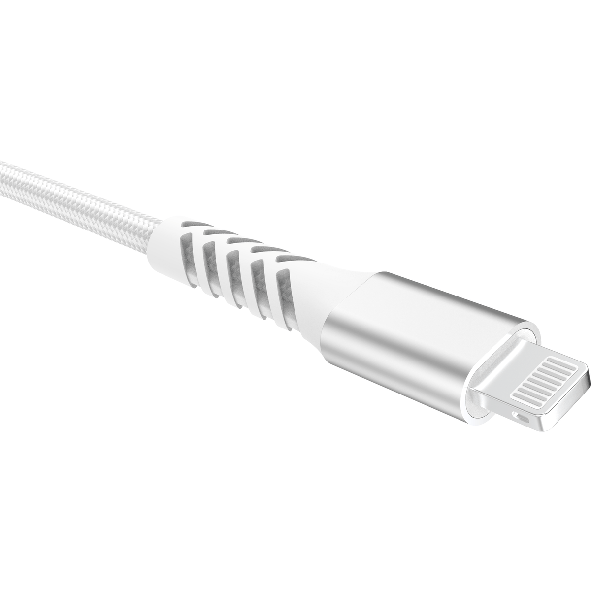 Grateq Pro-kabeln med USB-C- och Lightning-kontakter är lämplig för laddning av enheter och dataöverföring. Den flätade kabeln och aluminiumkontakterna säkerställer hållbarhet även vid aktiv användning. Den 2,25 meter långa kabeln är MFi-certifierad för iPhone- och iPad-användning.