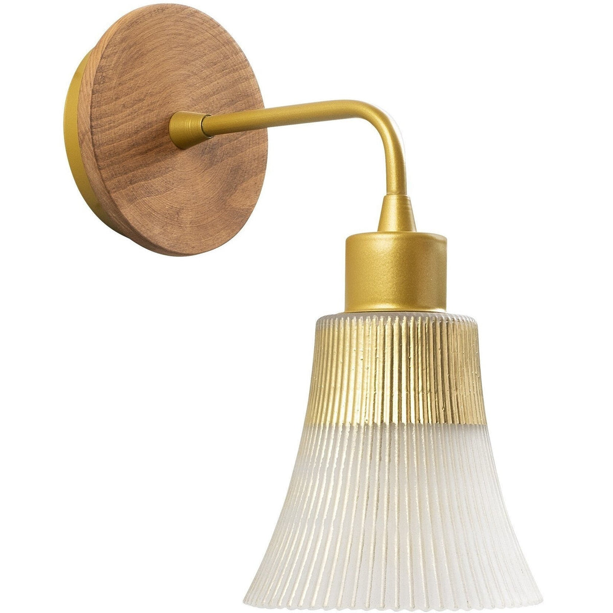 Denna vägglampa är tillverkad av högkvalitativa material, vilket säkerställer hållbarhet och livslängd. Järn- och träkonstruktionen ger en robust bas, medan glasskärmen ger en touch av elegans och möjliggör ett mjukt, diffust ljus.