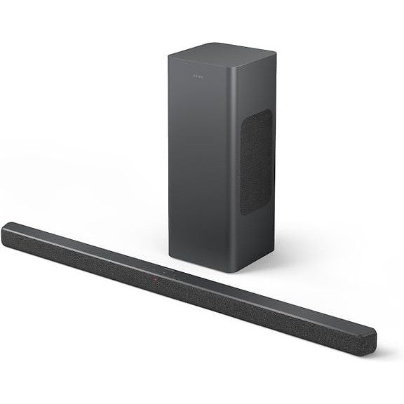 Den ultratunna soundbarens uppslukande ljudteknik och ultrakompakta trådlösa subwoofer fyller rummet med ljud. Soundbaren är en perfekt följeslagare för Ambilight-TV, vilket gör tittarupplevelsen ännu mer underhållande. 320 W effekt, Bluetooth 5.3, HDMI eARC och fyra EQ-ljudlägen skapar en mångsidig användarupplevelse.