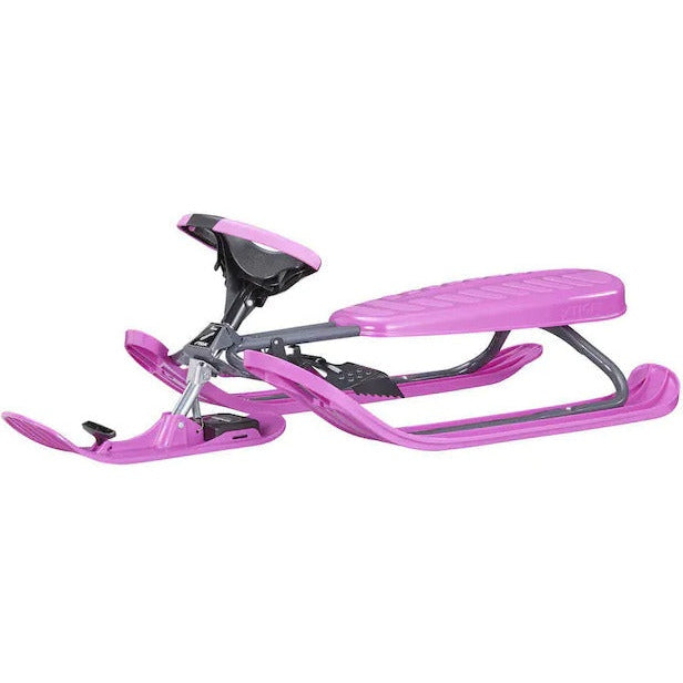 Den livfulla rosa färgen ger en touch av roligt och stil till dina vinteräventyr. Stå ut i backen och gör ett uttalande med denna iögonfallande släde. Det är inte bara ett transportsätt nerför backen; det är en återspegling av din personlighet och äventyrliga anda.