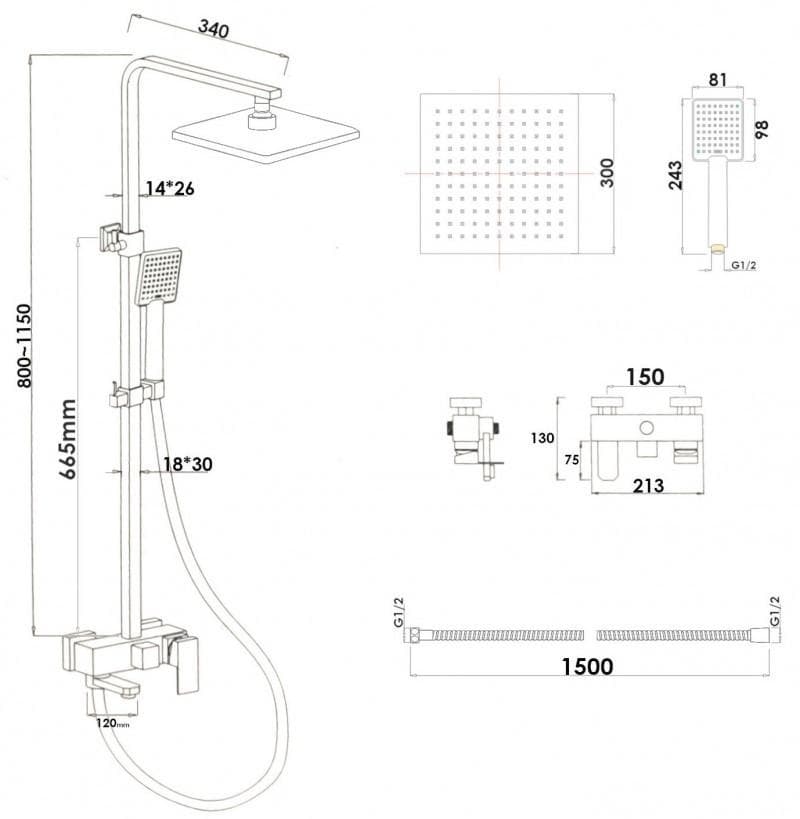 Duschsetet är utformat för personlig komfort och inkluderar en höjdjusterbar monteringsstång i rostfritt stål och en handduschhållare som kan justeras fritt med en klämma. Regnduschmunstycket har också en justerbar vinkel, så att du kan anpassa din duschupplevelse.
